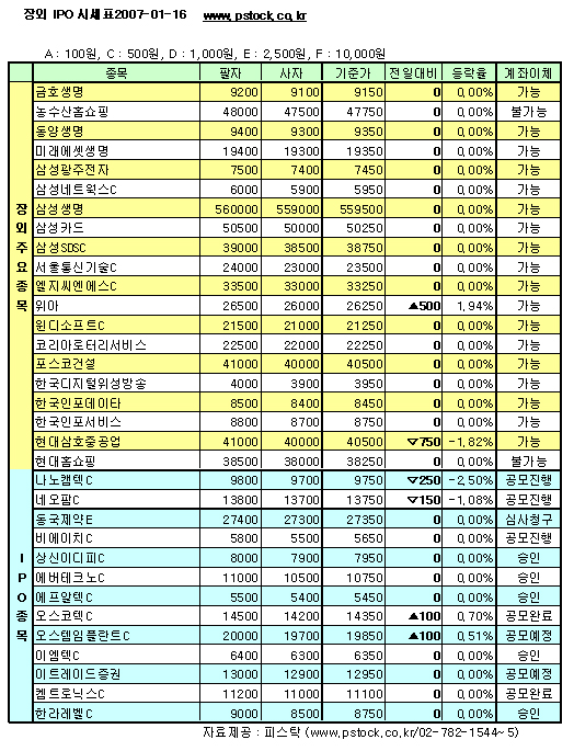 이밖에, 동양생명 9350원, 삼성카드 5만250원, 엘지씨엔에스 3만3250원, 서울통신기술 2만3500원으로 주요 대형종목은 변동폭이 없었다.