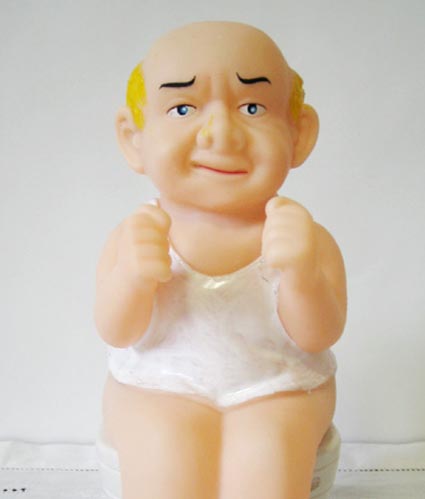 먼저 ‘소리 지르는 변기아저씨’ ( 사진1)인형이 있다. 머리숱이 없는 아저씨가 변기 위에서 울상을 하고 마구 소리를 지르는 것이다. 큰일을 보는 시늉을 하면서 좌우로 들썩들썩 움직이고 물을 내린다. 가만히 보고 있으면 절로 웃음이 터지기 쉽다. 1만 3,800원.