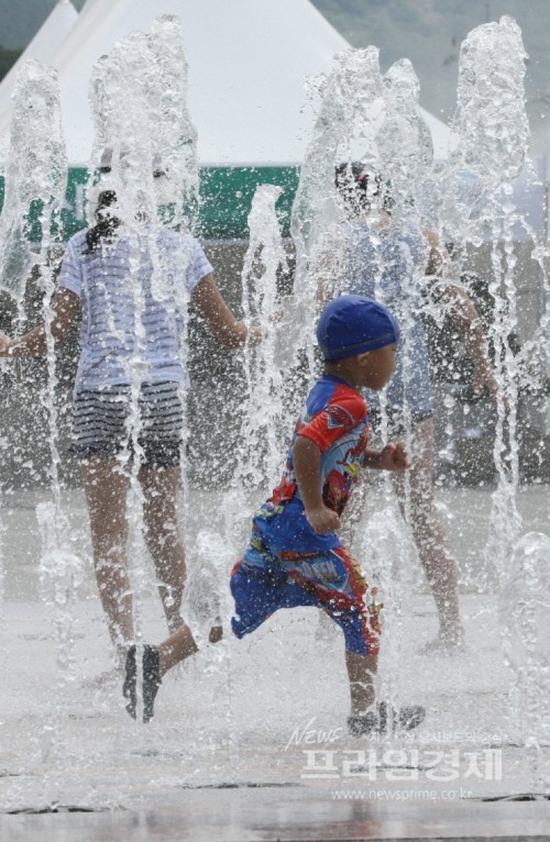 [프라임경제] '제40회 강진청자축제' 나흘째인 31일 전남 강진군 대구면 강진도예문화원광장에서 음악분수가 춤을 추는 가운데 더위를 이기려는 아이들이 신나게 물놀이 하는 모습이 보는 사람마저 시원하게 한다.