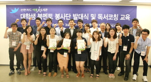 | 신한카드는 2일 박두준 상임이사와 이재정 부사장이 참석한 가운데 ‘신한카드 아름人 도서관 대학생 북멘토 봉사단’ 발대식을 가졌다. | ||