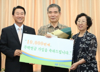 주택금융공사는 김씨 부부에게 효도상품권을 증정하는 행사를 마련, 주택연금 만 번째 가입을 축하했다.