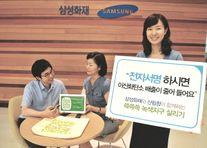 | 삼성생명은 전자청약서에 전자서명을 통해 보험 가입 시 평균 약 30장의 종이를 절약할 수 있다고 밝혔다. | ||
