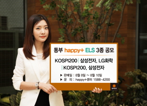 [프라임경제] 동부증권(016610·대표 고원종)은 8일부터 10일까지 스텝다운형 '동부 happy+ 파생결합증권(ELS) 제901회'와 월지급식 스텝다운형 '동부 happy+ 파생결합증권(ELS) 제902회', 스텝다운형 '동부 happy+ 파생결합증권(ELS) 제903회' 등 ELS 3종을 판매한다.