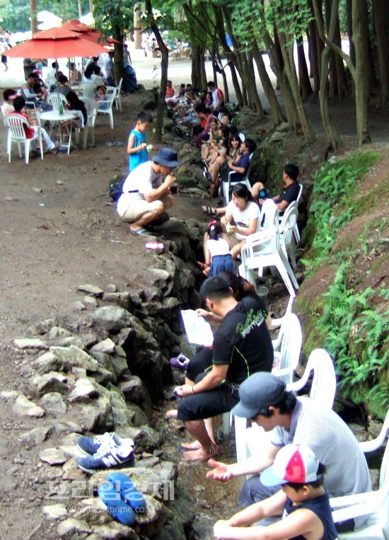 [프라임경제] 막바지 여름휴가를 즐기기 위해 17일 전남 보성을 찾은 관광객들이 푸른 보성차밭을 배경으로 시원한 계곡물에서 족욕을 즐기고 있다.