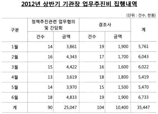 2010년 상반기 기관장 업무추진비 집행내역은 다음과 같습니다.