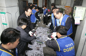 대구 은행은 지난 2002년부터 'DGB봉사단'을 결성해 다양한 사회공헌활동과 내고향 사랑운동을 전개하고 있으며 특히 2005년 79억원, 지난해에는 창립 이래 사상최대의 실적 달성으로 전년대비 22% 늘어난 당기순이익의 4.0%인 총 96억 원을 지역사회 공헌사업에 지출했다.