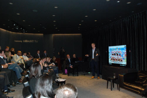 이날 강연에서 '알렉스 패트리지'는 삼성전자의 최고급 스마트TV인 75인치 ES9000 모델을 활용한 훈련 과정과 경기 분석 등이 경기력 향상에 얼마나 많은 영향을 미쳤는지를 실제 사례를 통해 소개했다.