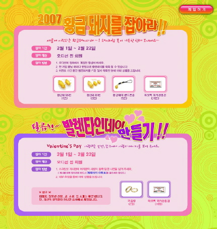 이와 함께 오는 22일까지 설날을 맞아 오디션 게임을 하면 받을 수 있는 복돼지를 많이 모은 게이머에게, 황금돼지 5돈ᆞ 황금돼지 핸드폰줄 등을 선물하는 ‘2007 황금돼지를 잡아라’ 이벤트도 열린다.