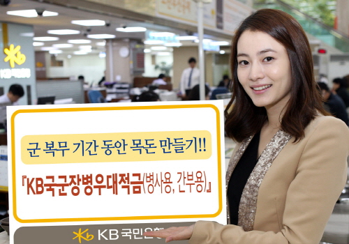 | KB국민은행 관계자는 "KB국군장병우대적금(병사용,간부용)은 군 복무기간 동안 소액으로 목돈을 만들고자 하는 군인들을 지원하기 위해 개발된 상품으로, 재테크에 관심이 많은 국군장병들의 많은 호응이 기대된다"고 말했다. | ||