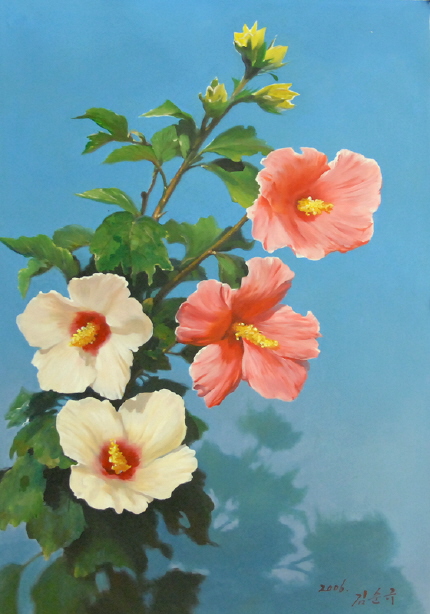 공훈예술가 김순규 화백 작 “ 무궁화 꽃(62*91cm) "