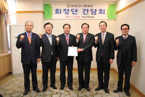 [프라임경제] 전국시장․군수․구청장협의회(회장 배덕광 해운대구청장)는 29일 대전시 리베라호텔에서 최근의 지방현안사항에 대한 향후 대응방안을 논의하기 위해 ‘회장단 간담회’를 개최했다.
