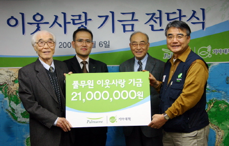 [ 프라임경제](주)풀무원(대표 남승우)은 6일(화) 국제구호단체인 기아대책(회장 정정섭)에 북한 지하수 개발에 필요한 기금 2100만원을 전달하고 북측 동포에게 깨끗한 생명의 물을 지원할 계획이다.
