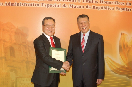 [프라임 경제] 자유투어 심양보 대표이사 (www.freedom.co.kr T : 02-3455-8888)가 마카오 지역 활성화에 기여한 공로로 지난 2일 오후 4시 마카오 문화중심에서 열린 마카오 반환 7주년 기념 행사에서 한국인 최초 특별 공로상을 수상했다.