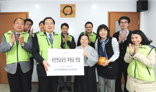 이밖에도 국민연금은 우리주위의 어렵고 힘든 이웃을 위해 공단 임직원들의 정성을 모아 불우이웃돕기 성금으로 2000만원을 사회복지공동모금회에 기탁했다.