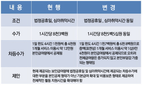 | 공휴일 및 심야 서비스 수가 변경 사항 |