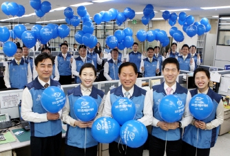 | 서진원 신한은행장(사진 가운데)이 자원봉사대축제 풍선 띄우기를 진행하고 있다. | ||