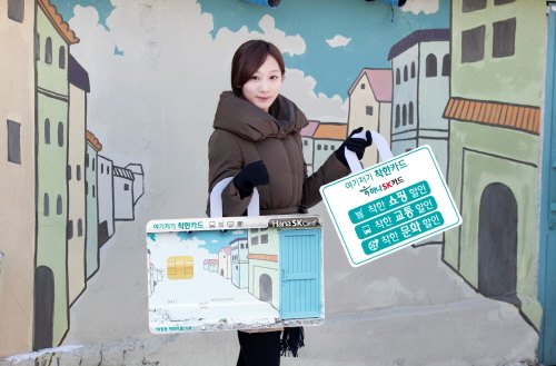 | 벽화봉사단체인 '컨츄리스마일'의 '마장동 벽화마을' 작품을 메인 디자인으로 사용한 하나SK '여기저기 착한카드'는 폭넓은 쇼핑 할인 혜택을 제공하고 있다. | ||