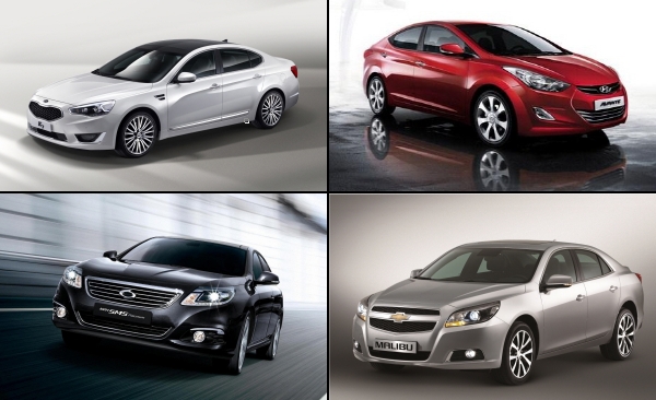 | 사진 속 왼쪽 상단부터 시계방향으로 더 뉴 K7(기아차), 아반떼(현대차), 쉐보레 말리부(한국GM), 뉴 SM5 플래티넘(르노삼성). | ||