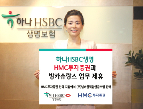 | 하나HSBC생명은 HMC투자증권과 방카슈랑스 업무 협약을 맺고 지난 2일부터 본격적인 상품 판매에 나섰다. | ||