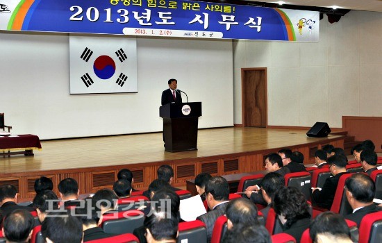 [프라임경제] 이동진 전남 진도군수가 지난 2일 계사년 새해업무를 시작하는 시무식을 통해 "그 동안 야심차게 준비해 왔던 2013년도의 계획된 군정을 차질 없이 추진해 나가기 위해 공직자들이 노력해 주길 바란다"고 당부했다.