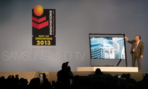 삼성 UHD TV는 기존 TV들의 고정관념을 탈피한 과감하고 독창적이며, 프리미엄을 넘어 오랫동안 변하지 않을 '타임리스(Timeless) 갤러리' 디자인을 적용해 참석자들의 큰 관심을 끌었다.