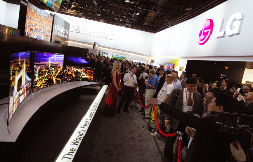 [프라임경제] 8일(현지시각) 미국 라스베이거스에서 개막한 'CES 2013'에서 수많은 관람객들이 LG전자의 올레드 TV를 관람하고 있다.