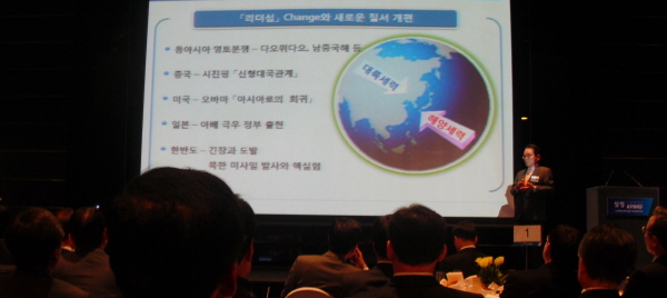 | 김교태 삼정KPMG 대표이사는 한국 기업 경쟁력 강화 방향을 SPEED라는 키워드로 해석하고, 불경기의 인재 확보 필요성에 대해 역설했다. | ||