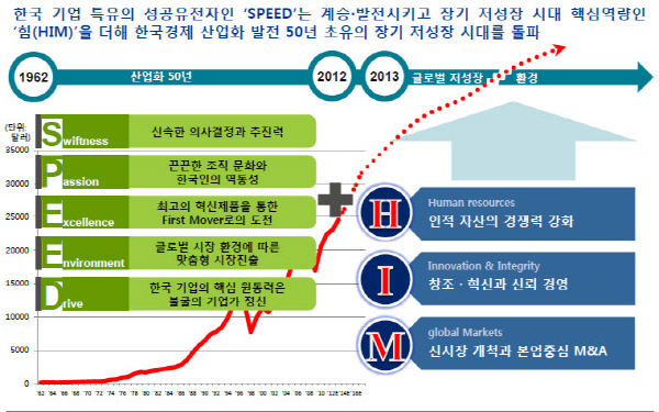 김 대표는 한국 기업의 성공 요인 SPEED의 세부 항목을 △(Swiftness) 신속한 의사결정과 추진력 △(Passion) 끈끈한 조직 문화와 한국인의 역동성 △(Excellence) 최고의 혁신제품을 통한 First Mover로의 도전 △(Environment) 글로벌 시장 환경에 따른 맞춤형 시장진출 △(Drive) 한국 기업의 핵심 원동력인 불굴의 기업가 정신 등으로 의미를 부여했다.
