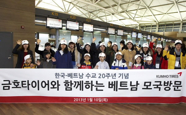 이번 모국방문 프로그램은 '한-베 수교 20주년 기념'으로 국내 거주중인 베트남 다문화가정들 신청을 받아 총 10가족(20명)을 선정했으며, 금호타이어가 왕복항공권과 현지 체재비 등 경비 일체를 지원한다.