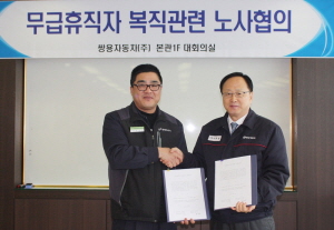 또 무급휴직자 복직과 관련한 조건과 절차, 생산라인 운영방안 및 라인배치 근무인원 등 제반 사항은 2월 초까지 노사 실무협의를 진행해 결정키로 했다. 미 배치자 관련해서는 배치될 때까지 단체협약에 따라 처리키로 했다.