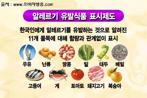 현행 ‘알레르기 유발식품 표시제도’는 한국인에게 알레르기를 유발하는 것으로 알려진 우유ㆍ밀ㆍ대두 등 11개 품목에 대해 함량과 관계없이 표시를 하도록 의무화돼 있습니다.