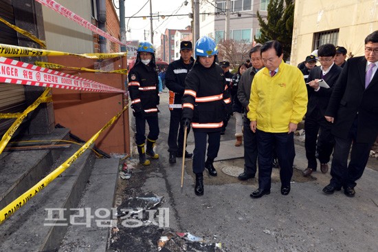 [프라임경제] 강운태 광주광역시장은 14일 오후 북구 오치동 기도원에서 발생한 화재 현장을 방문해 이성연 북부소방서장으로부터 현장상황을 보고 받고 현장 피해상황을 점검했다. 이날 화재는 오전 9시45분경 북구 오치동 H 기도원에서 원인을 알 수 없는 폭발음과 함께 화재가 발생했으며, 기도하던 목사와 신도 3명 등총 4명의 인명피해가 발생했다.