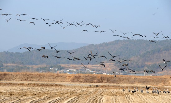 순천시는 15일 "순천만에 두루미류 3종 693마리(흑두루미 660, 재두루미 27, 검은목두루미 6)가 목격됐고, 이 가운데 흑두루미 660마리가 관찰돼 지난해 같은 기간의 633마리에 비해 30여 마리 증가한 것으로 관찰됐다"고 밝혔다.