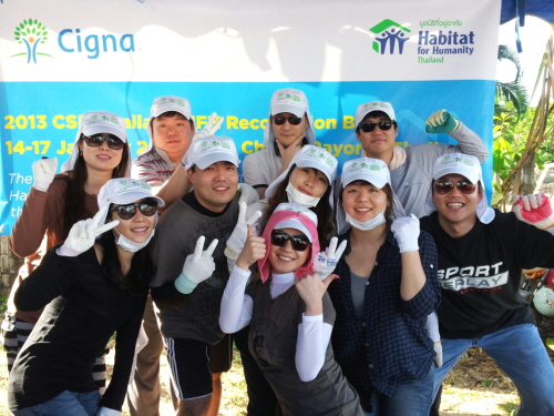 라이나생명을 포함해서 전세계 시그나 법인 12개국에서 모인 임직원 약 40여명의 '사랑의 집짓기' 봉사단원들은 타이만 근처 태국 라용(Rayong) 지역으로 파견됐다. 봉사단원들은 바닥 고르기, 벽돌 나르기, 벽돌 쌓기 및 시멘트 공사 등 집 건축 작업 전반에 직접 참여하며, 라용 지역의 무주택 서민을 위해 총 네 채의 집을 건축한다. 봉사단원 40여명 중 10명이 라이나생명 직원으로 11개국 중 라이나생명에서 가장 많은 인원이 참여했다.