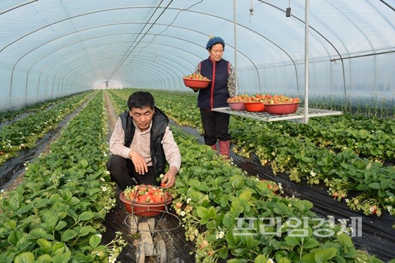 [프라임경제] 전국 최초로 농림수산식품부의 딸기원묘 증식시설 지원 사업자로 선정된 전남 순천시 외서면의 한 딸기 농가에서 15일 수확이 한창이다. 사진은 순천시청 제공.
