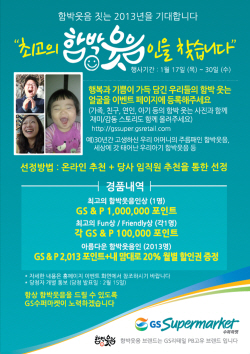 [프라임경제] 보기만 해도 기분 좋아지는 이벤트가 진행된다. GS수퍼마켓은 2013년 새해를 맞아 17일부터 30일까지 함박웃음 컨테스트를 진행한다.