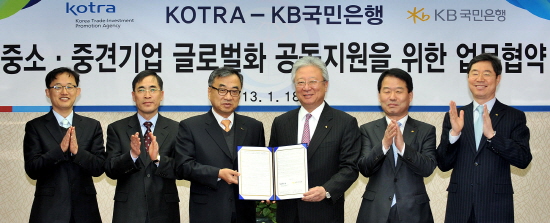 [프라임경제] 국민은행(105560·은행장 민병덕)은 18일 서울 KOTRA본사에서 '중소·중견기업의 글로벌화 공동지'를 위한 양해각서(MOU)를 체결하고 양 기관의 핵심역량을 활용한 중소·중견기업 세계화 지원에 적극 협력할 계획이라고 밝혔다.