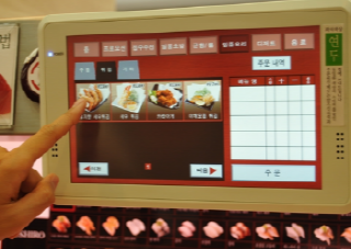 | 스시로는 터치패널을 통해 원하는 메뉴를 주문할 수 있는 것이 특징이다. 주문한 메뉴가 테이블 근처에 도착할 즈음에는 음성으로 안내가 된다. | ||
