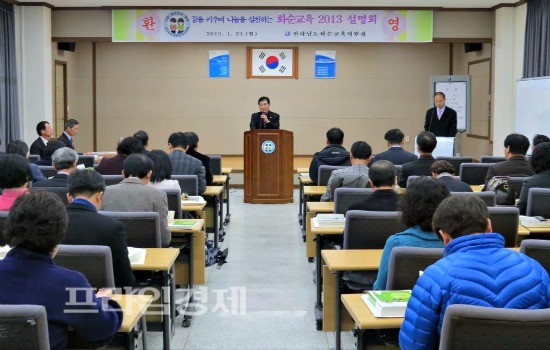 [프라임경제] 전남도화순교육지원청(교육장 류남규)은 21일 교육지원청 2층 대회의실에서 관내 초․중학교 교장과 교무부장 52명을 대상으로 '꿈을 키우며 나눔을 실천하는 행복한 화순교육 2013 설명회'를 개최했다.