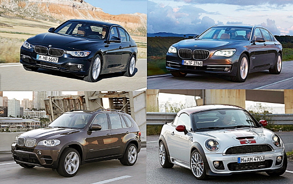 | BMW는 디젤 모델의 고객 수요에 따른 상품 기획과 광범위한 세그먼트의 라인업 등에 힘업어 국내 수입차 시장에서 막강한 독주 체제를 구축했다(사진은 왼쪽 상단부터 시계방향으로 3시리즈, 7시리즈, 미니쿠페, X5순) | ||