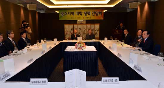 [프라임경제] 강운태 광주광역시장은 23일 라마다호텔에서 시 교육감과 지역대학 총장 등 13명이 참석한 가운데 열린 '광주지역 대학정책간담회'에 참석해 대학등록금 동결 등을 통해 학부모 부담을 덜어줄 것을 요청했다.