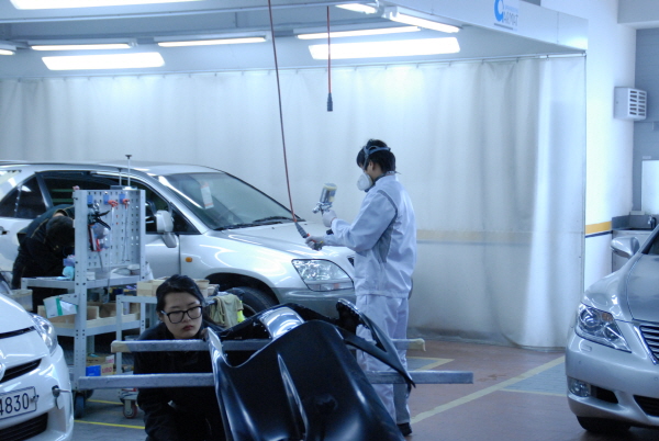 | 서대구 렉서스·토요타 서비스센터에서 판금·도색작업을 하고 있는 모습. | ||