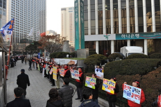 | 과거 하나금융 앞에서 집회 중인 외환은행 노조원들. ⓒ 외환노조 | ||