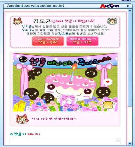 [프라임경제]국내 최대 온라인 마켓플레이스 옥션(www.auction.co.kr)은 받을 선물이라도 필요한 것은 콕 찍어 말하는 젊은 세대를 겨냥해 새로운 개념의 디지털 선물 서비스인 '쪼르기’를 오픈했다.