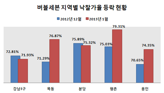 이번 조사결과에 대해 경매 전문가들은 다소 의외란 반응이다. 그도 그럴 것이 버블세븐지역은 그동안 경기불황으로 경매시장서 철저히 외면 받아왔다.