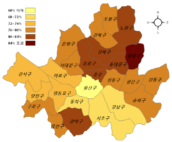 | 25개 구별 아파트 낙찰가율 현황. ⓒ부동산태인 | ||