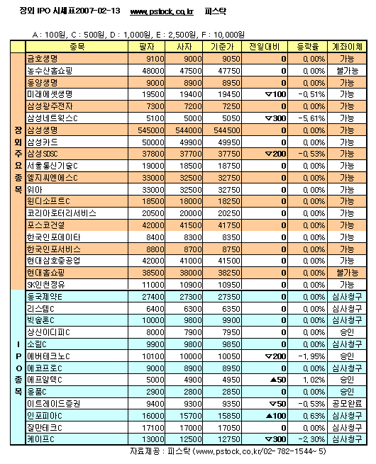 [프라임경제]13일 주요장외 종목들이 약세를 보였다.