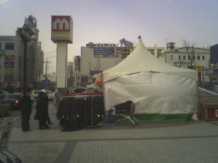 또 방학점 앞 천막들도 지저분하기는 마찬가지로 천막 밖으로 삐져나온 옷가지들과 여기저기 흐트러진 매대들로 인해 싸구려 땡처리 매장이미지를 만들어 가고 있다.