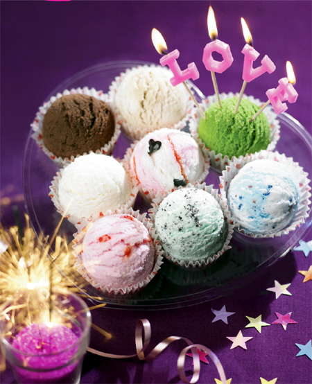 로맨틱한 둘만의 오붓한 파티를 즐기고 싶다면 ‘버라이어티 러브팩’이 제격. 하트형 틀에 담긴 아이스크림과 장식용 ‘LOVE’초가 로맨틱한 분위기를 한껏 살려줘 미니파티의 분위기를 내는데 손색이 없다.