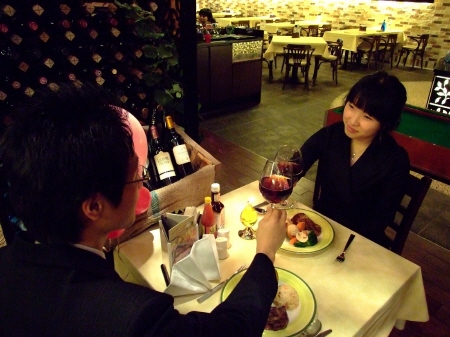 <사진설명= 트라우스에서 스테이크와 와인으로 로맨틱한 데이트를 즐기고 있다.